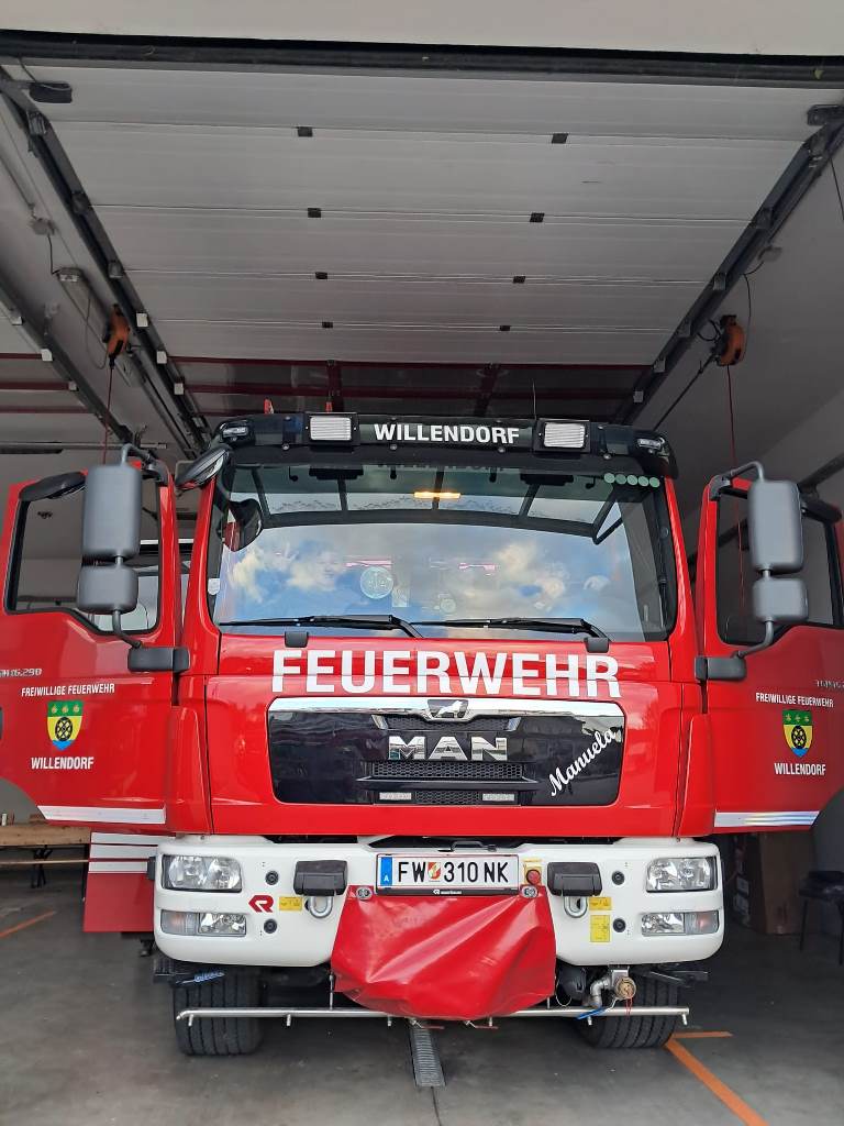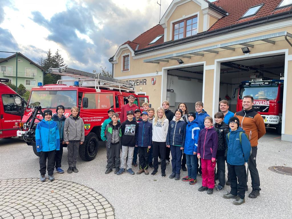 Doch der Tag war noch nicht ganz zu Ende: Unsere Betreuer Patrick, Marcel und Gregor hatten noch eine besondere Überraschung für unsere Jugendgruppe parat. Da unser Betreuer Gregor Lentsch auch als Gastmitglied bei der FF Willendorf gemeldet ist, organisierte er kurzfristig einen spannenden Abstecher ins Feuerwehrhaus Willendorf.