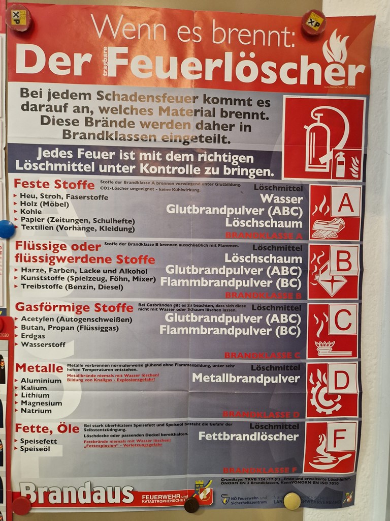 Abgerundet wurde die Einheit mit einer detaillierten Erklärung des Feuerlöschers. Dabei wurden die verschiedenen Brandklassen erläutert sowie die richtige Bedienung eines Feuerlöschers praxisnah erklärt.