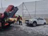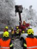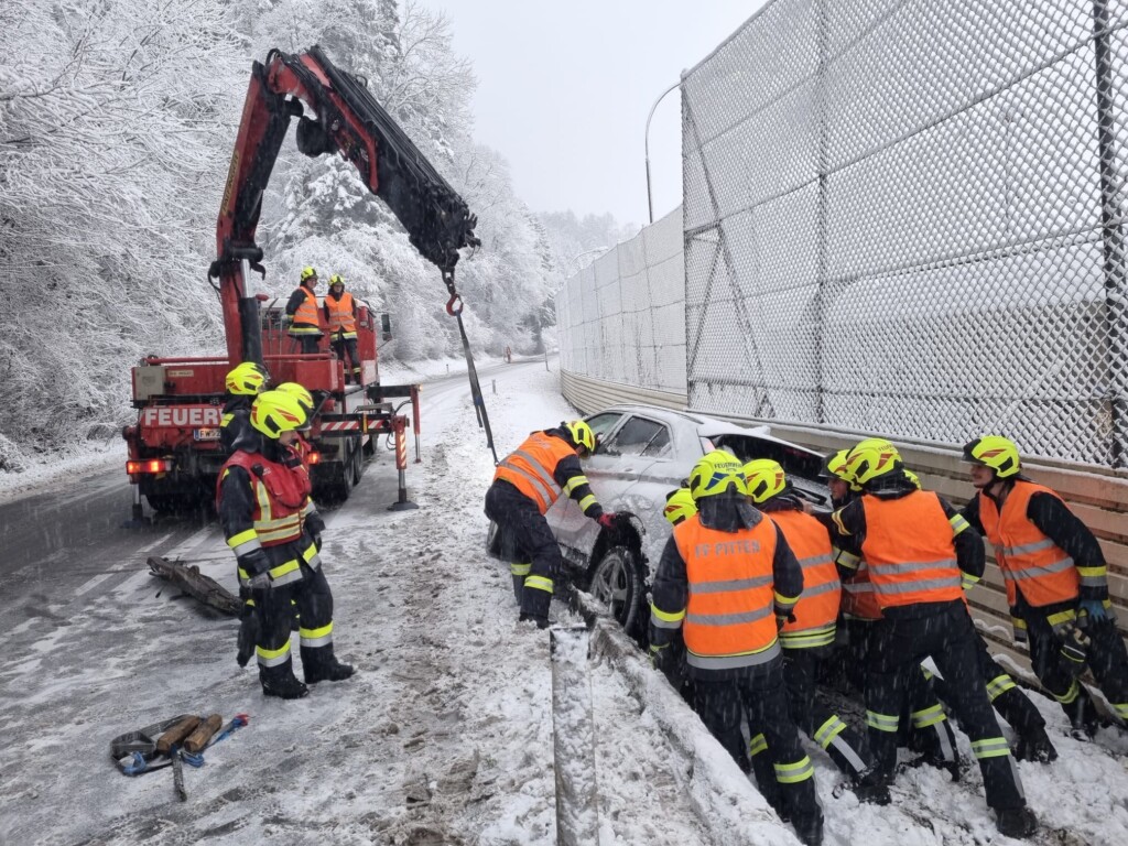 Mittels Kran wurde das Fahrzeug zunächst vom Betonsockel angehoben. In weiterer Folge konnte es mithilfe von Manneskraft und einem Abschleppseil aus dem Graben geborgen werden.