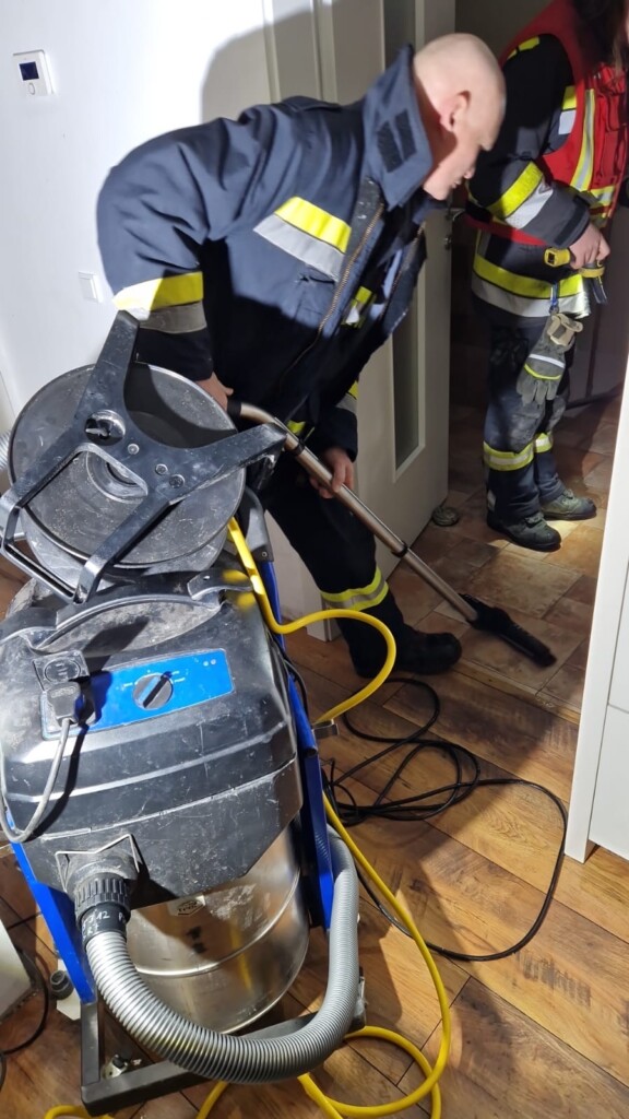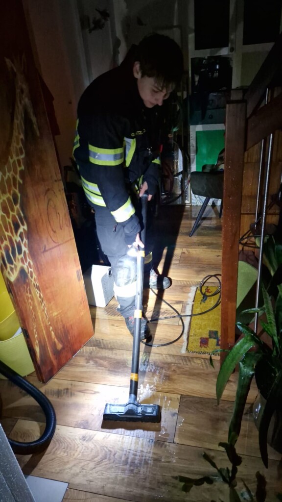 Am 24.1.2026 wurden wir zu Auspumparbeiten alarmiert. Aufgrund der anhaltenden Kälte war ein Wasserrohr zugefroren und in weiterer Folge geplatzt. Dadurch gelangte Wasser vom Dach in das erste Obergeschoss eines Gebäudes.