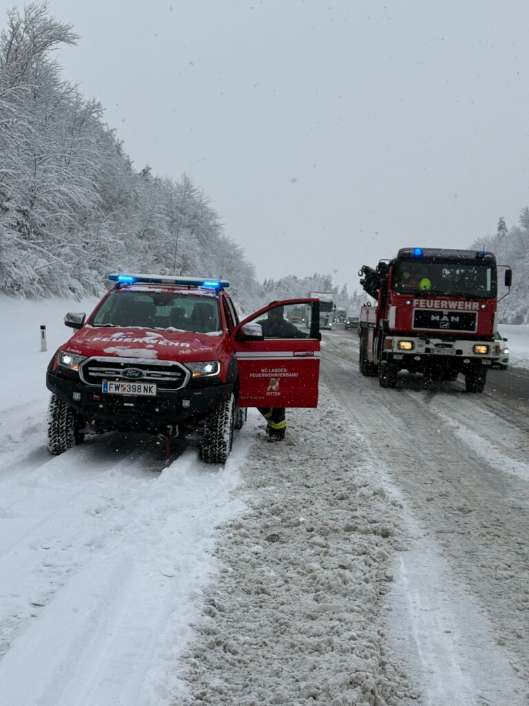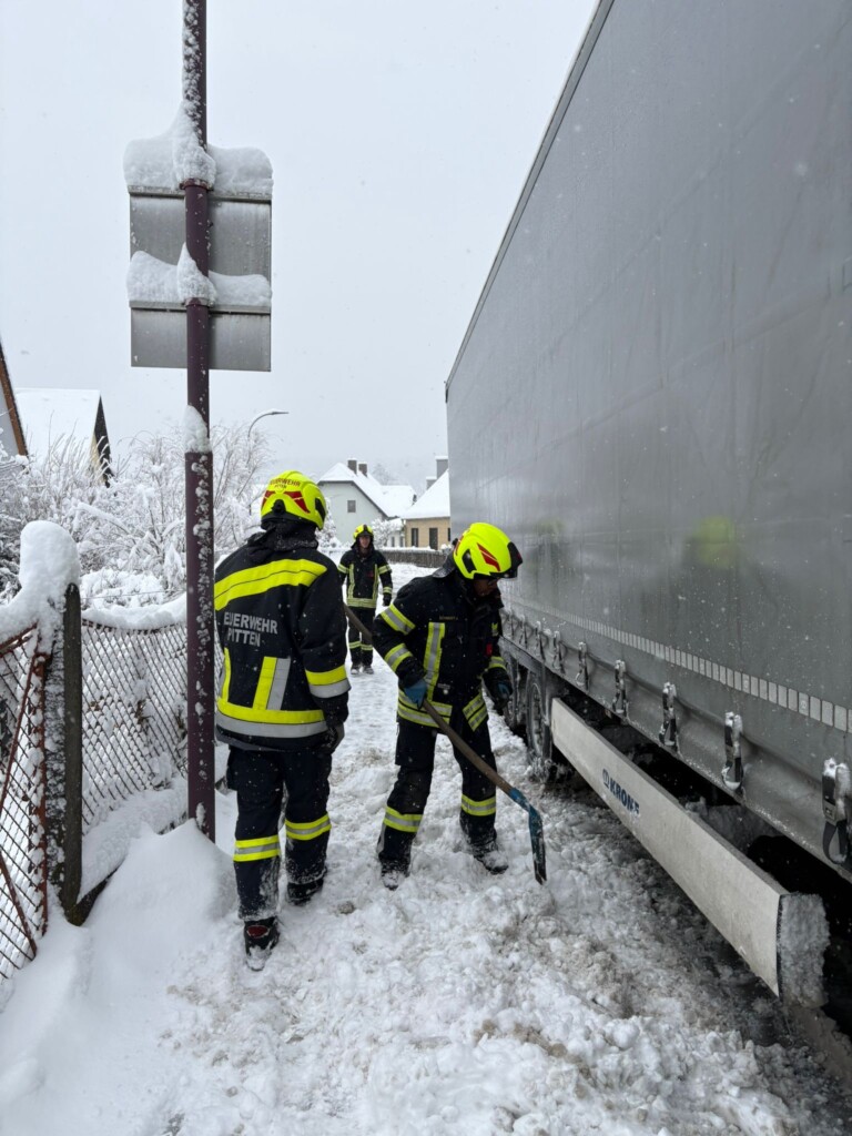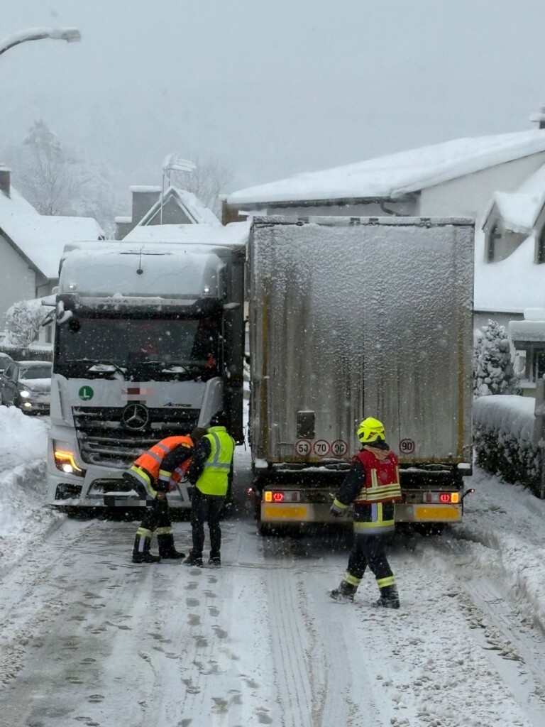 Auch im Ortsgebiet kam es zu zahlreichen Problemen durch den starken Schneefall. Mehrere Lkw blieben hängen und mussten von uns geborgen werden. Zusätzlich unterstützten wir mehrere Pkw-Lenker, die mit ihren Fahrzeugen im Schnee stecken geblieben waren.