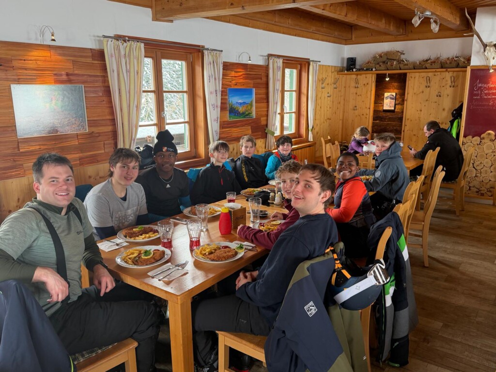 Zu Mittag stärkten wir uns im Gasthaus Dissauer an der Talstation, bevor am Nachmittag der Riesentorlauf-Skibewerb startete. Kurz vor dem Lauf besichtigten die Kids noch gemeinsam die Strecke, um bestens vorbereitet an den Start zu gehen.
