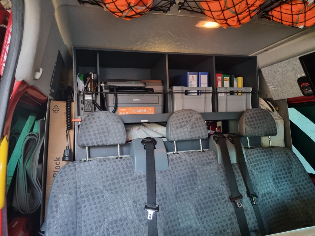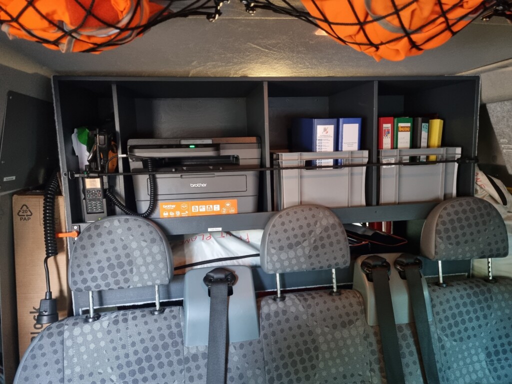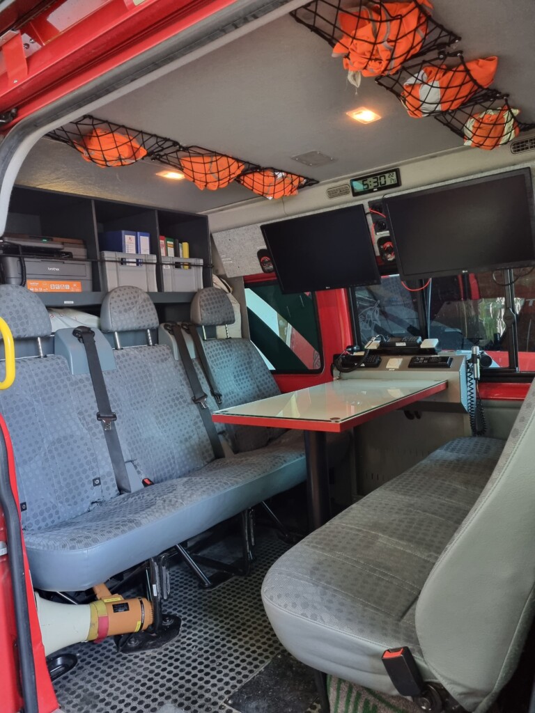 Durch div. Kartenmaterial, Laptop, Drucker, 4 Funkgeräte, etc. ist eine Lageführung und Kommunikation gut gegeben.