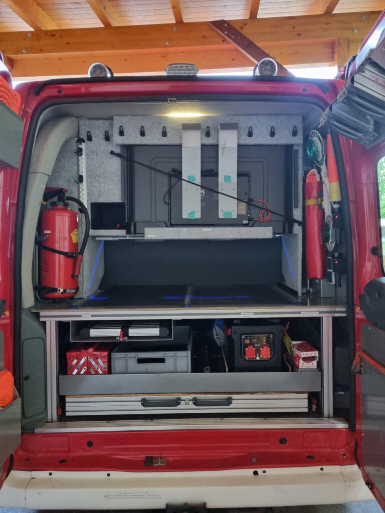 Dieses Fahrzeug entspricht nach dem Umbau der Baurichtlinie Einsatzleitfahrzeug des NÖLFV und dient somit als mobile Einsatzleitstelle.